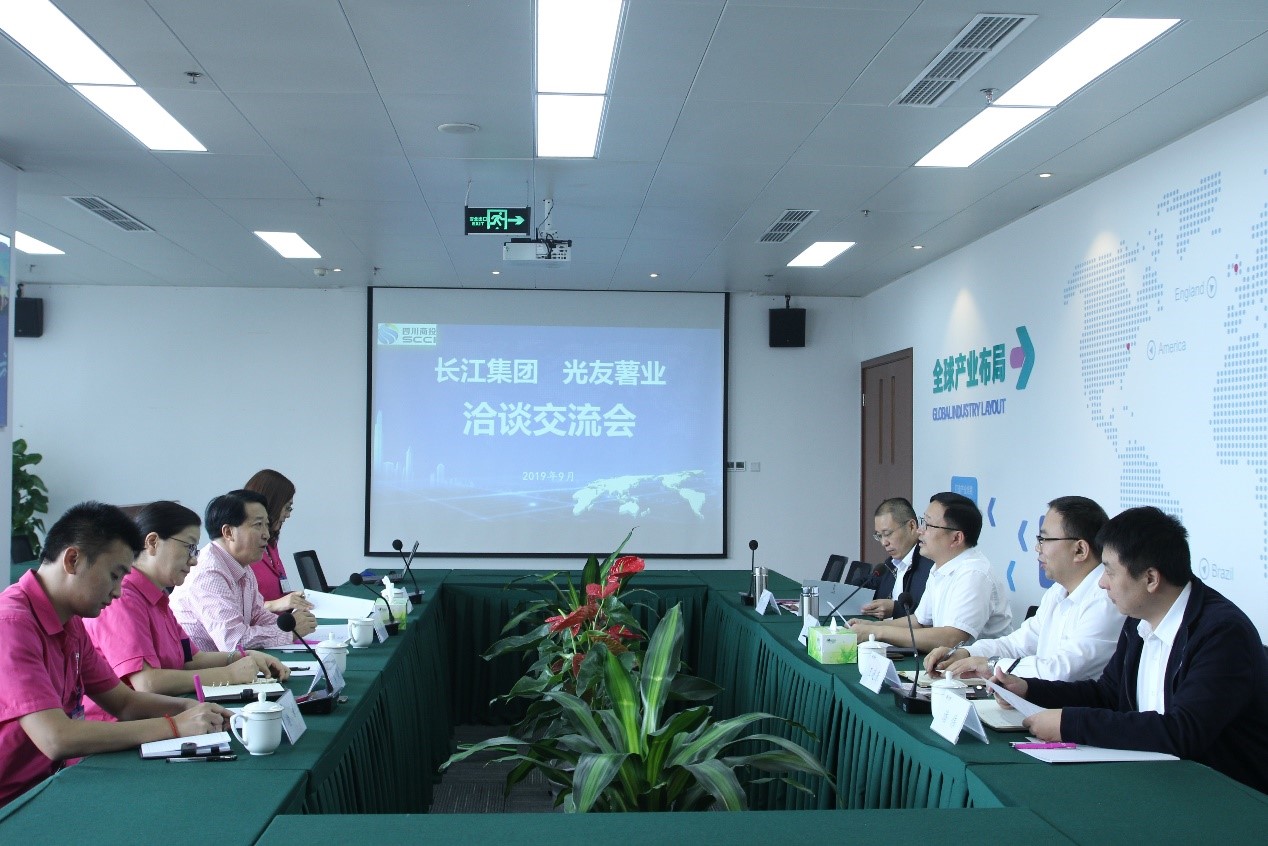 9月26日,长江集团与四川光友薯业有限公司在长江集团一号会议室举行洽谈交流会。长江集团党委书记、董事长陈春,光友薯业董事长邹光友出席会议。