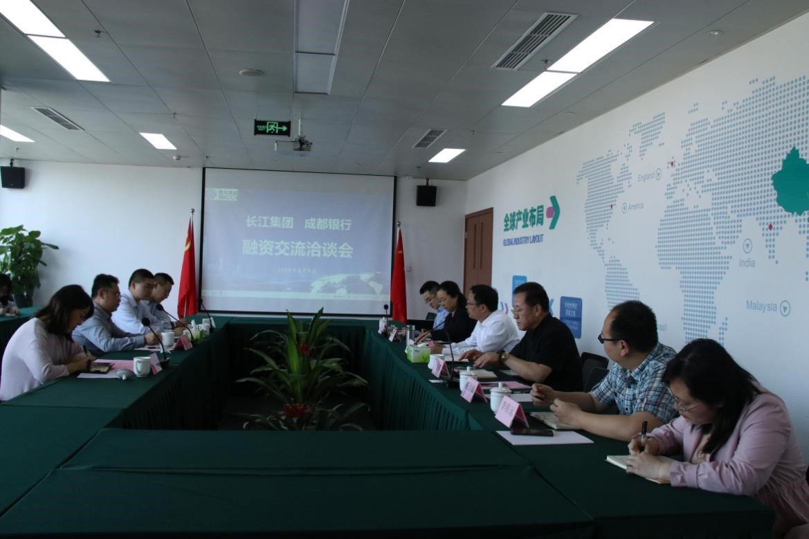4月9日下午,长江集团和成都银行举行融资交流洽谈会,长江集团党委书记、董事长陈春,成都银行成华支行行长助理付松、成都银行龙舟路支行行长张弛斌一行出席会议。