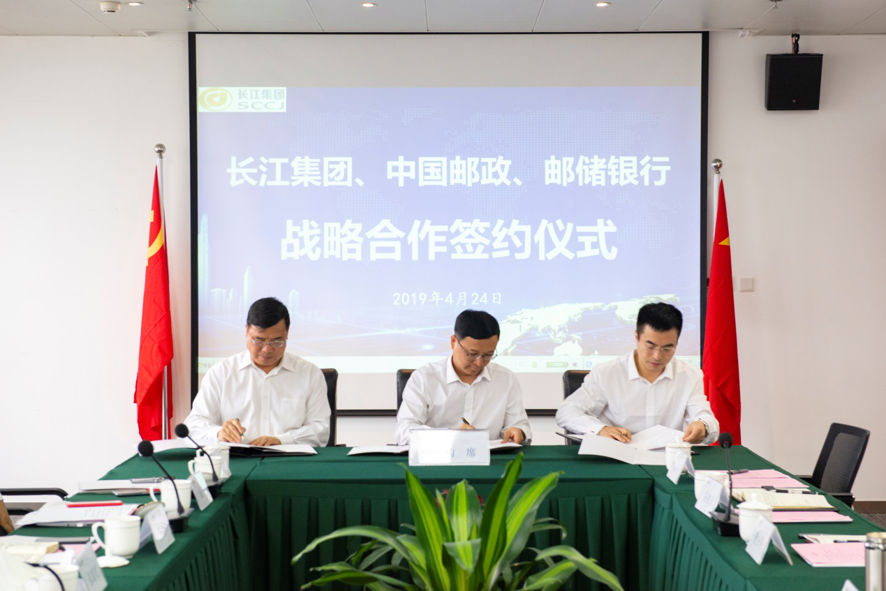 4月24日下午,长江集团、中国邮政四川省分公司、邮储银行四川省分行在集团一号会议室签订战略合作协议